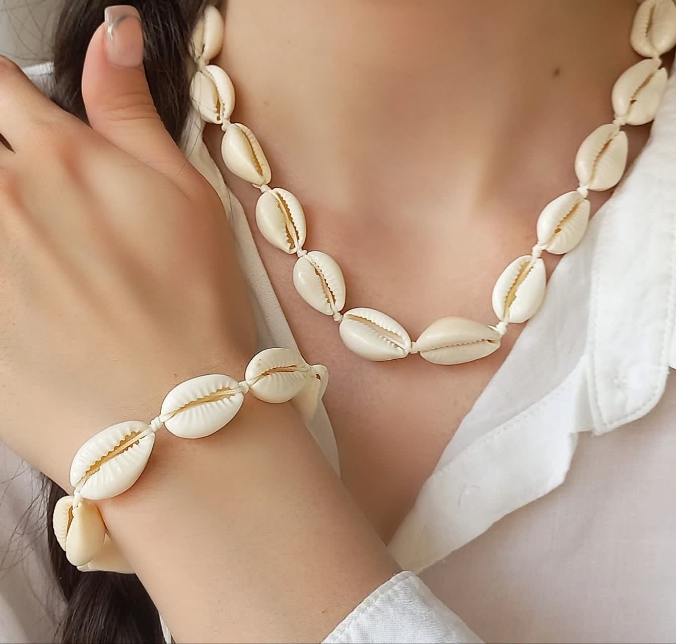 گردنبند و دستبند صدفی زنانه